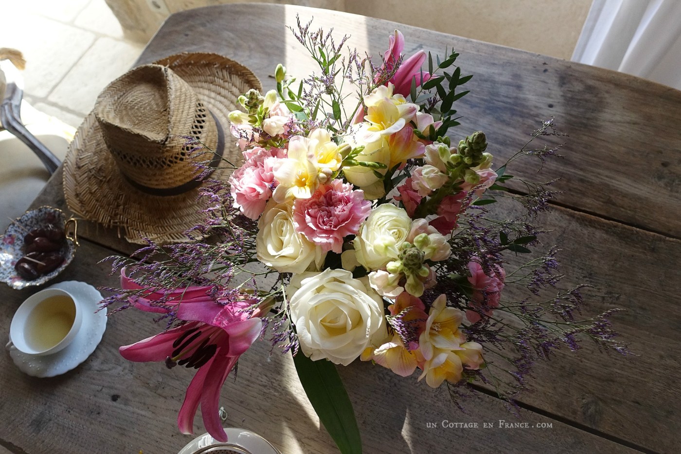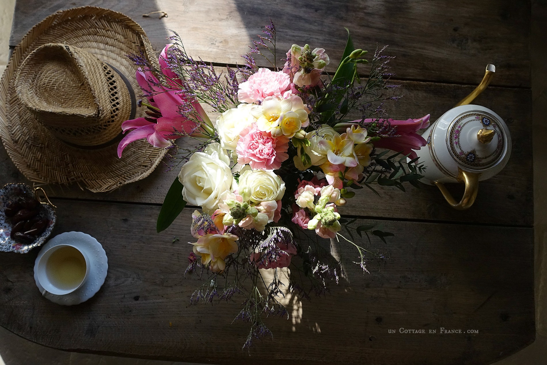 With Miles, who loves to sleep in the thyme, we admire, like proud farmers, jars filled with mint leaves, coriander seeds, chamomile flowers, sage leaves, thyme, savory, and rosemary twigs. This mini harvest will last until next year for culinary needs. An artful blend in green tea accompanies the plum jam. The luxury of homemade jam for breakfast is knowing what goes into it. Well, it’s clear: 6 kg of plums, 2 TS of powdered rosemary + no less than 6 kg of sugar!