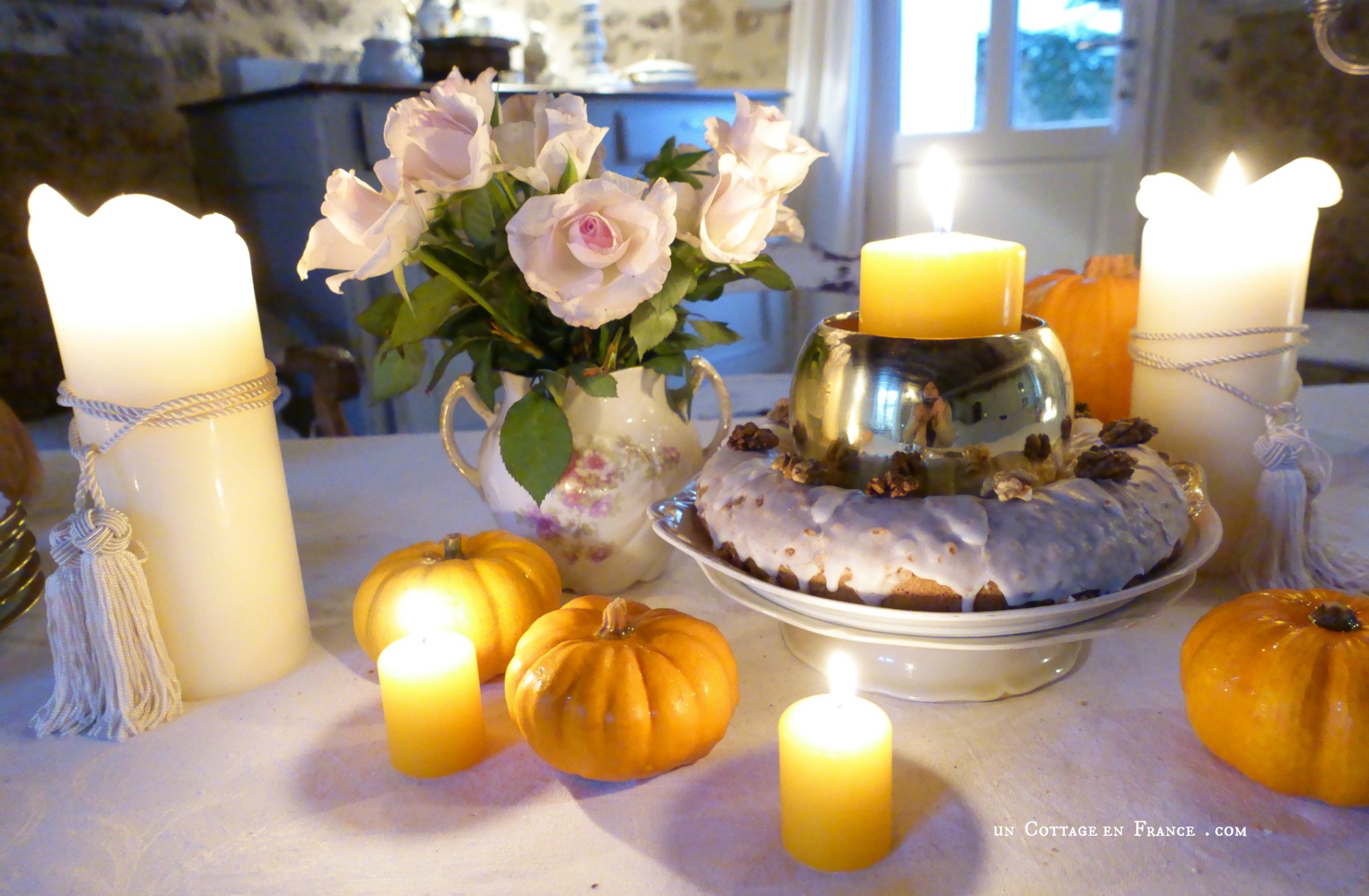 Etaler le glaçage sur le gâteau et décorer avec des cerneaux de noix.