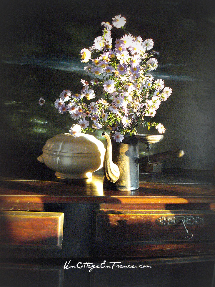 In light gray, the open doors highlight the bronze candle sconces that had languished in my bedroom. Now, their 18th-century style creates romantic atmospheres around ancient white china.